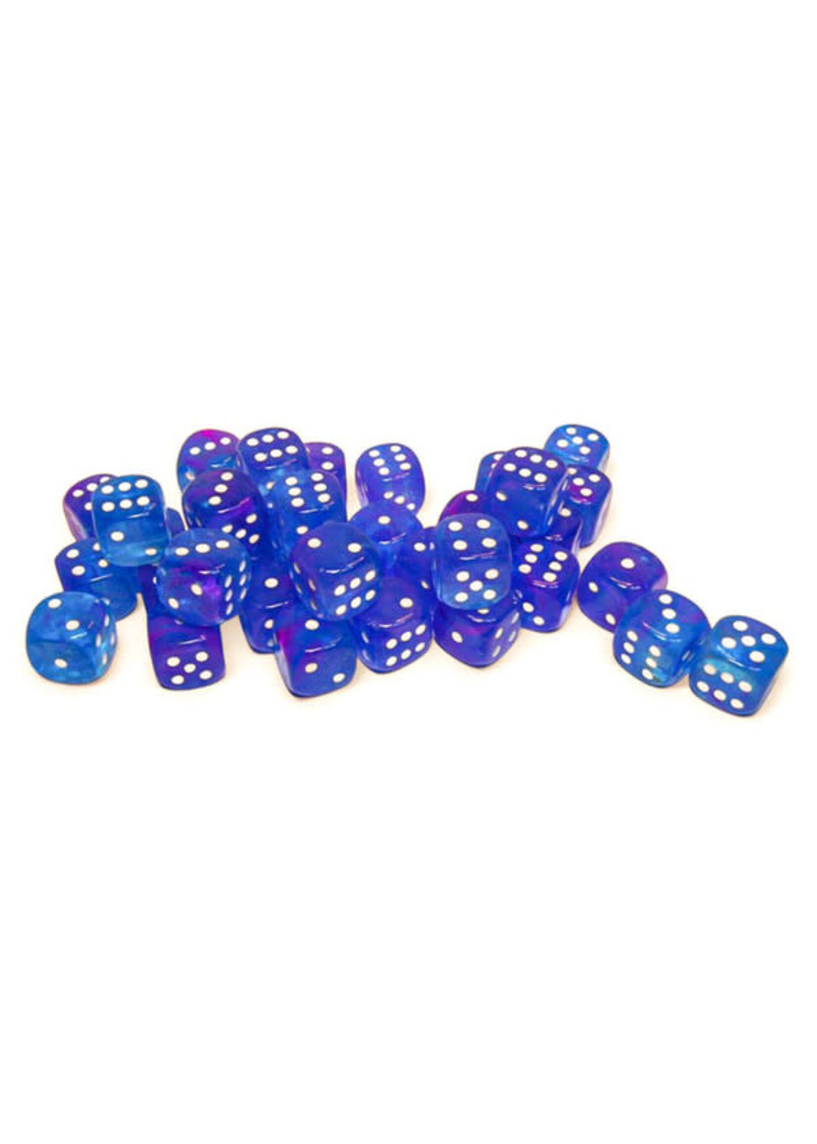 Each Set contains 36 Nebula® Aura™ 12mm d6 dice with white pips in a Display Case w/Lid.